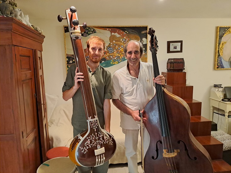 Certo che c’è un collegamento. Nel 2004 ho registrato Mantra da solo in uno studio a Treviso sovraincidendomi, così come è accaduto con Mandala. La storia è piuttosto lunga. Ero andato a cena in un ristorante indiano dove ho scoperto che c’erano dei musicisti indiani. Il cuoco era un cantante, il cameriere suonava le percussioni. Una sera ho portato con me il contrabbasso e suonando con loro ho capito come improvvisavano. Da quell’esperienza è nata l’idea di fare qualcosa con il contrabbasso che si chiamasse Mantra e anche allora mi sono sovrainciso. La registrazione originaria di Mandala dura solo quattro minuti, il concerto a Cividale invece durerà di più. Abbiamo strutturato il pezzo in quattro sezioni diverse, però non so quanto durerà una, quanto durerà un’altra. Quando improvvisi, se l’ispirazione è più forte suoni più a lungo, se l’ispirazione non è forte, ti fermi. Devi avere la sensazione di sapere già prima quello che stai per fare. Prima devi avere la frase in mente e poi la suoni. È completamente diverso da quando si suona la musica classica. È come se vedessi la nota prima di suonarla, il tuo dito va a suonare quella nota perché può esserci in quel momento solamente quella nota, non ce ne può essere un’altra. Importante quindi è il momento, in quel preciso momento deve manifestarsi quel particolare suono. Se ciò non accade, la magia della musica non avviene. Ad un certo punto diventi un mezzo, tu entri nella musica e la musica ti fa suonare in una maniera che neanche ti immagini. Ciò cambia anche il modo di respirare. In quei momenti sei ispirato, è la musica che ti fa respirare. Questa esperienza ti permette di estraniarti dal pubblico, ti consente di suonare come se non ci fosse il pubblico. Ciò vale anche per la musica classica. Quando faccio un concerto di musica classica, già nelle prime note cerco un suono, cerco un qualcosa che mi faccia entrare in questo mondo, che mi permette di sentirmi completamente a mio agio, anche se ci sono mille o duemila persone. Questa condizione è una necessità, devi essere espressivo, devi avere tanti colori nel tuo arco, devi entrare nel silenzio. Quindi l’esercizio che si deve fare quando si inizia a suonare è quello di imparare a entrare con la prima nota e anche con le altre nel silenzio.